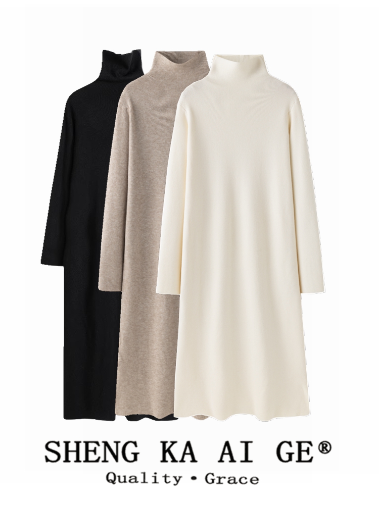 羊毛半高圆领针织连衣裙女秋冬新款过膝宽松显瘦毛衣裙内搭打底裙