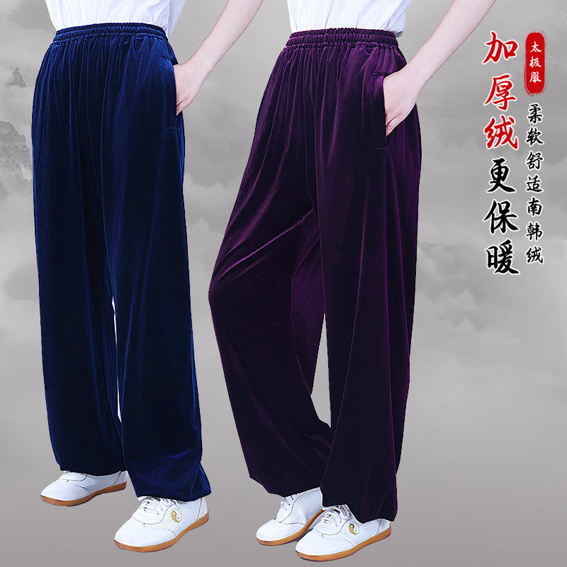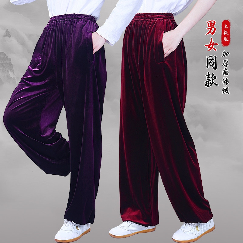 高端太极拳服裤金丝绒练功裤女士男大码运动裤南韩绒加厚保暖侧兜