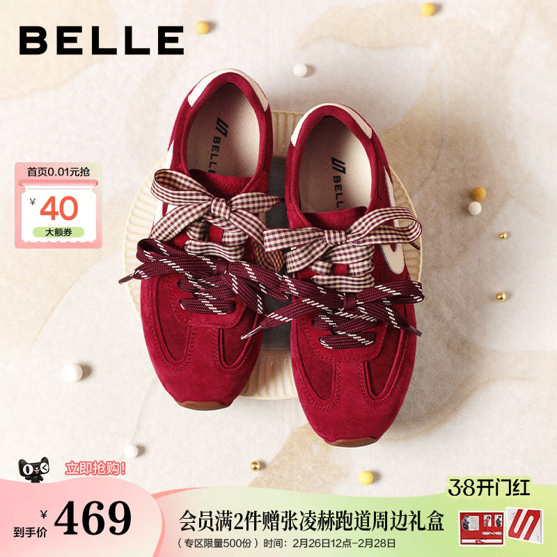 孙乐言推荐百丽树莓糖红色复古德训鞋女新款运动休闲鞋子F1P1D预