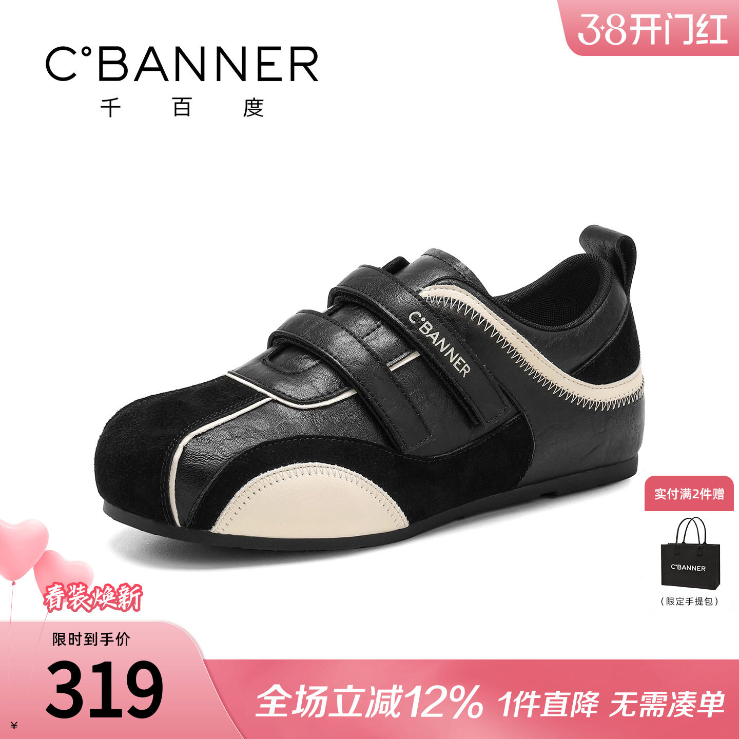 361女鞋休闲鞋女士2026春季新款防水鞋皮面运动鞋官方正品老爹鞋