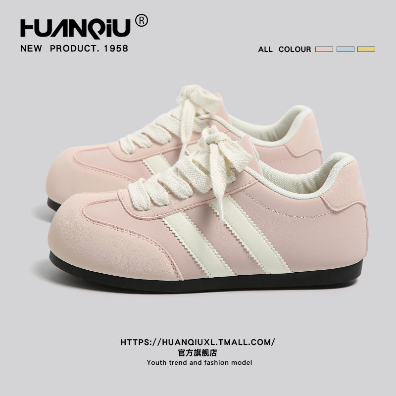 环球粉色德训鞋大头泡芙鞋女2026春季新款百搭厚底通勤运动休闲鞋