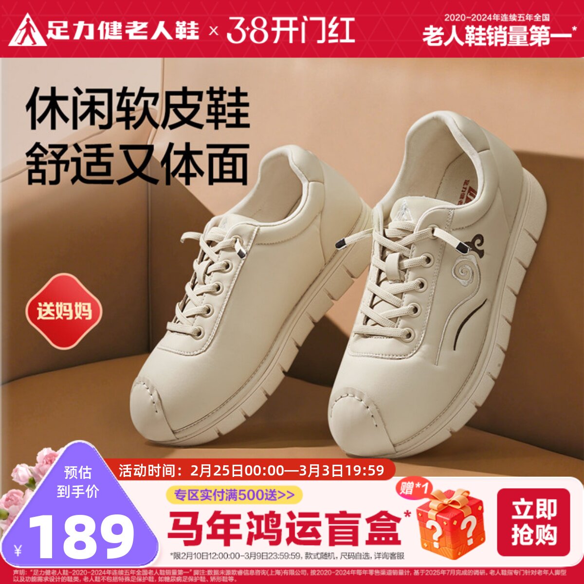 足力健老人鞋女款休闲鞋2025新品软底舒适妈妈鞋中老年防滑鞋