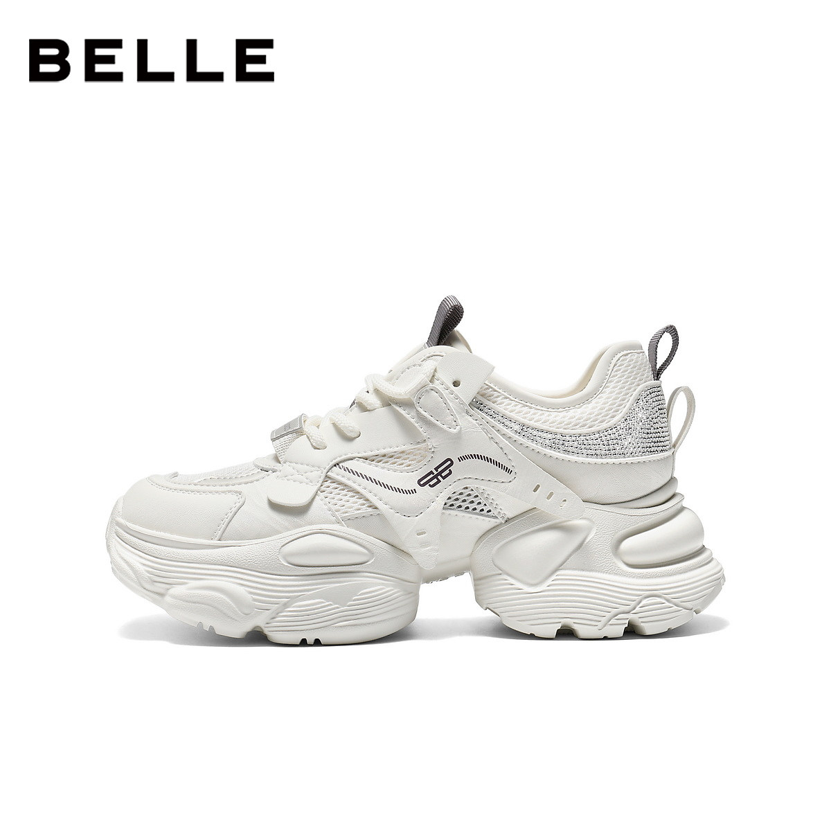 百丽网面厚底增高老爹鞋女2026夏季新款机能运动休闲鞋子F4M1DBM6