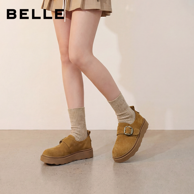 百丽坚果拿铁厚底勃肯鞋女26春季新款增高休闲乐福单鞋子F3V1DAA6