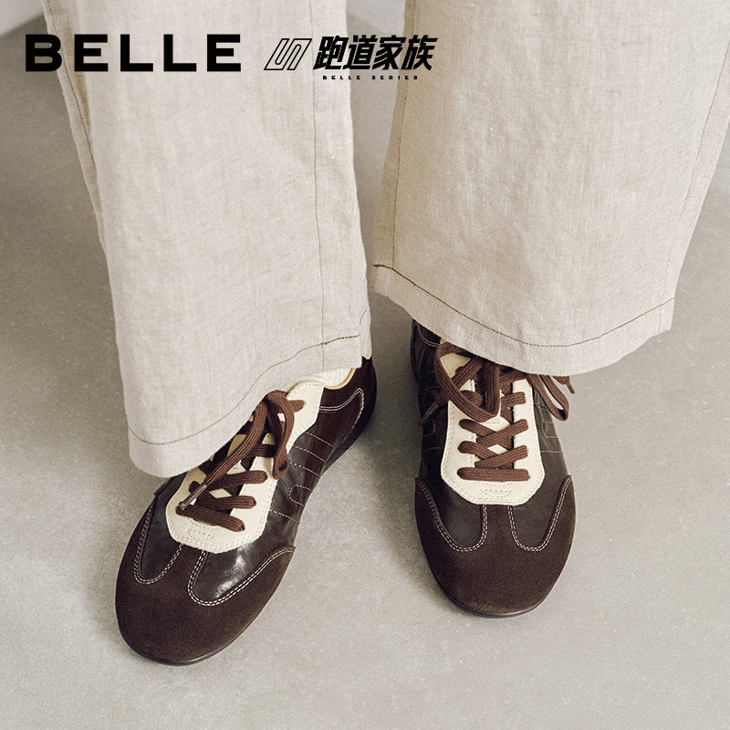 百丽跑道羊皮薄底赛车德训鞋女2026春季新款复古休闲鞋F6M1DAM6