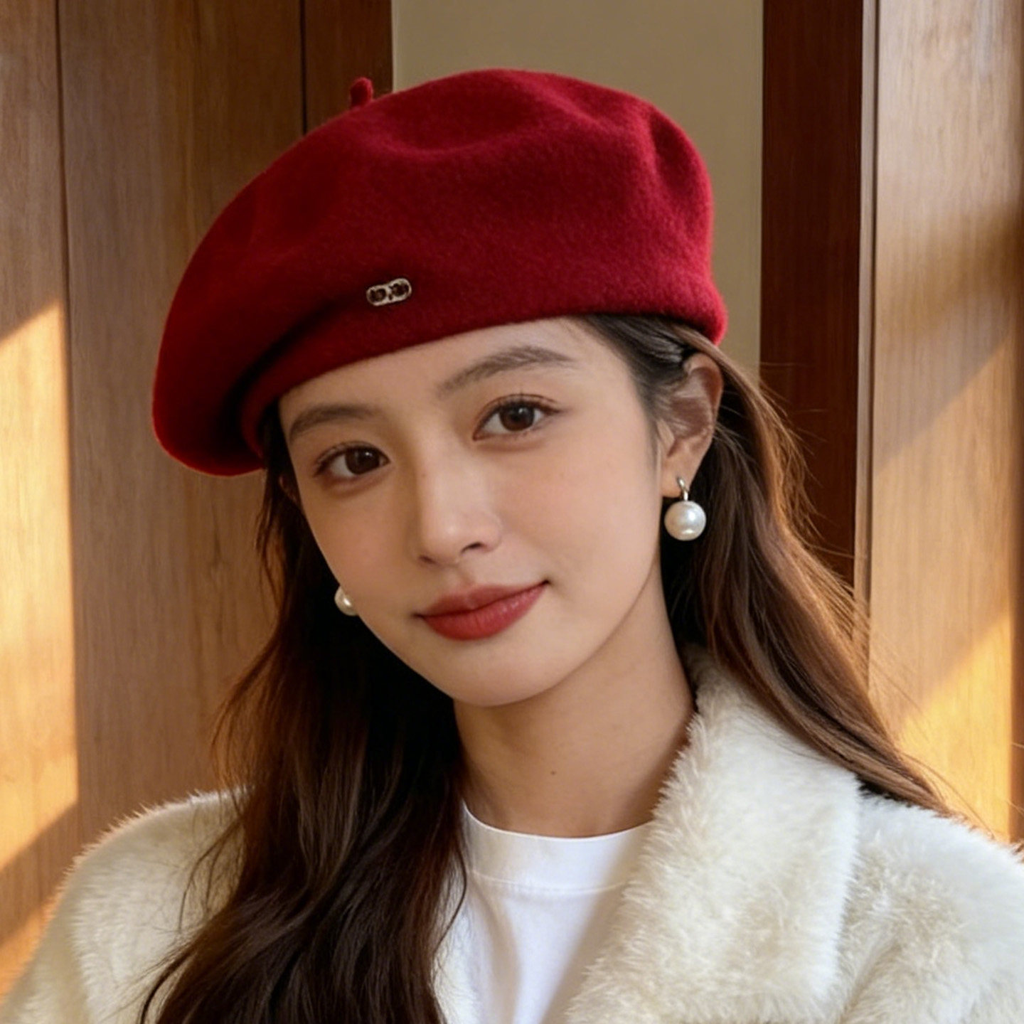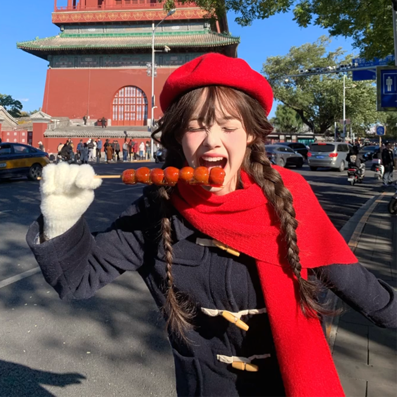 日系复古红色贝雷帽子女秋冬网红蓓蕾帽甜美百搭显脸小新年氛围感