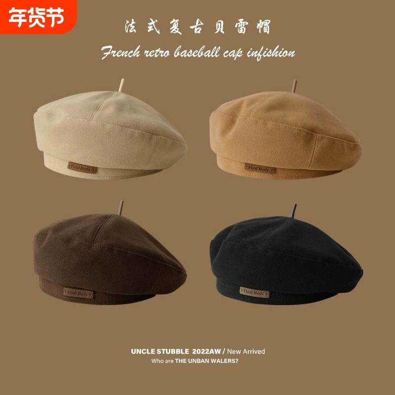 贝雷帽子女秋冬季英伦风显脸小画家帽网红款气质画家帽百搭蓓蕾帽