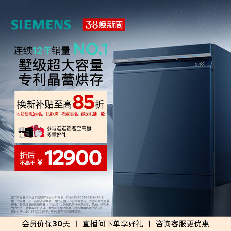 西门子智净魔方18套嵌入式晶蕾烘干消毒家用智能全自动洗碗机45ZL