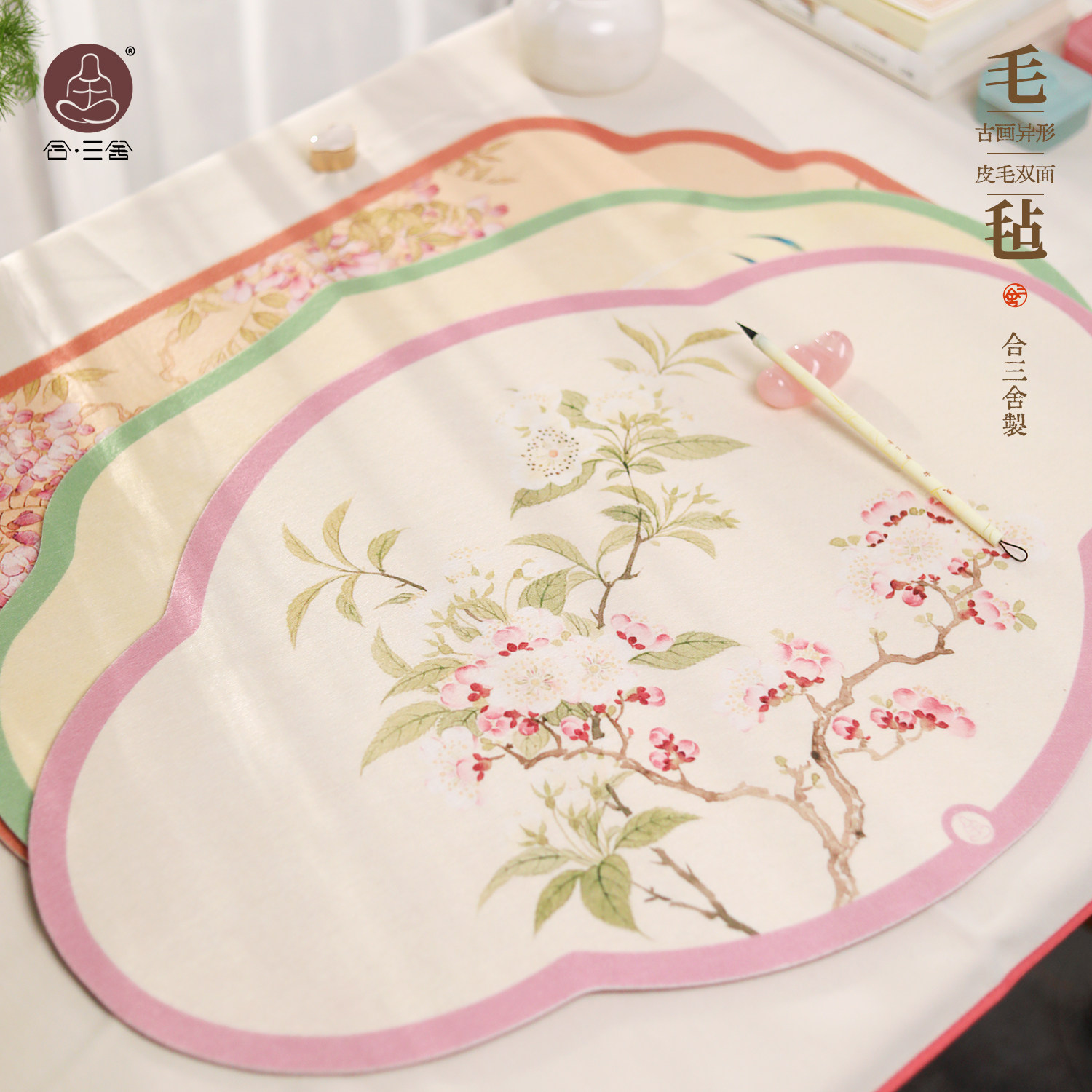 合三舍 书画皮革毛毡国风原创60%羊绒毛毡书画异型书桌垫书法绘画专用写毛笔字练字双面桌垫文房四宝国画毛毡