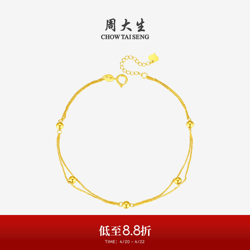 周大生黄金手链和田玉手串足金转运珠红玛瑙喜柿连连生日礼物女生
