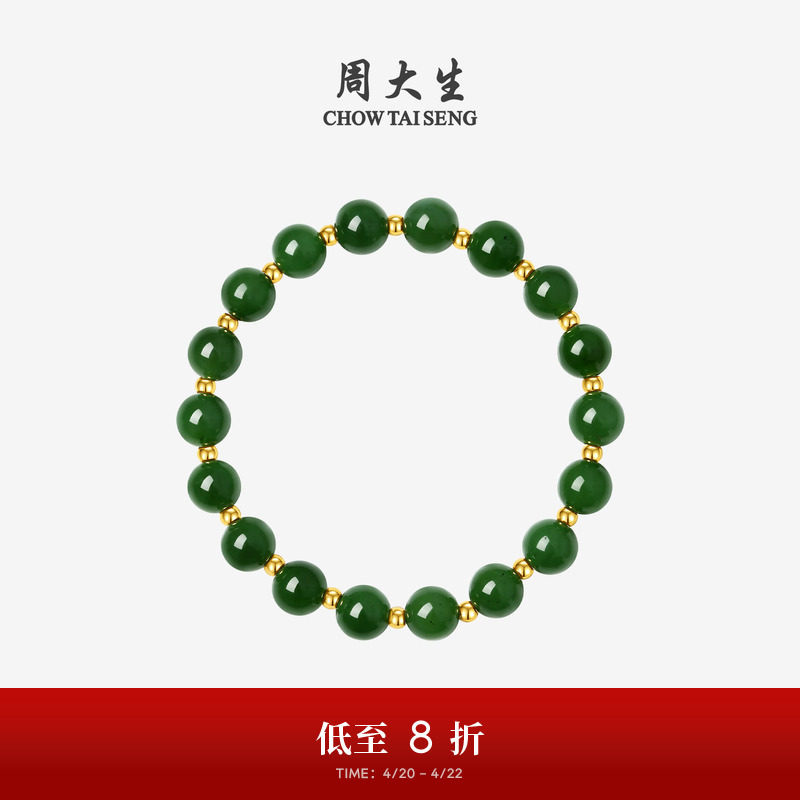 周大生黄金镶和田玉手串女款足金碧玉石手链生日礼物送女友送妈妈