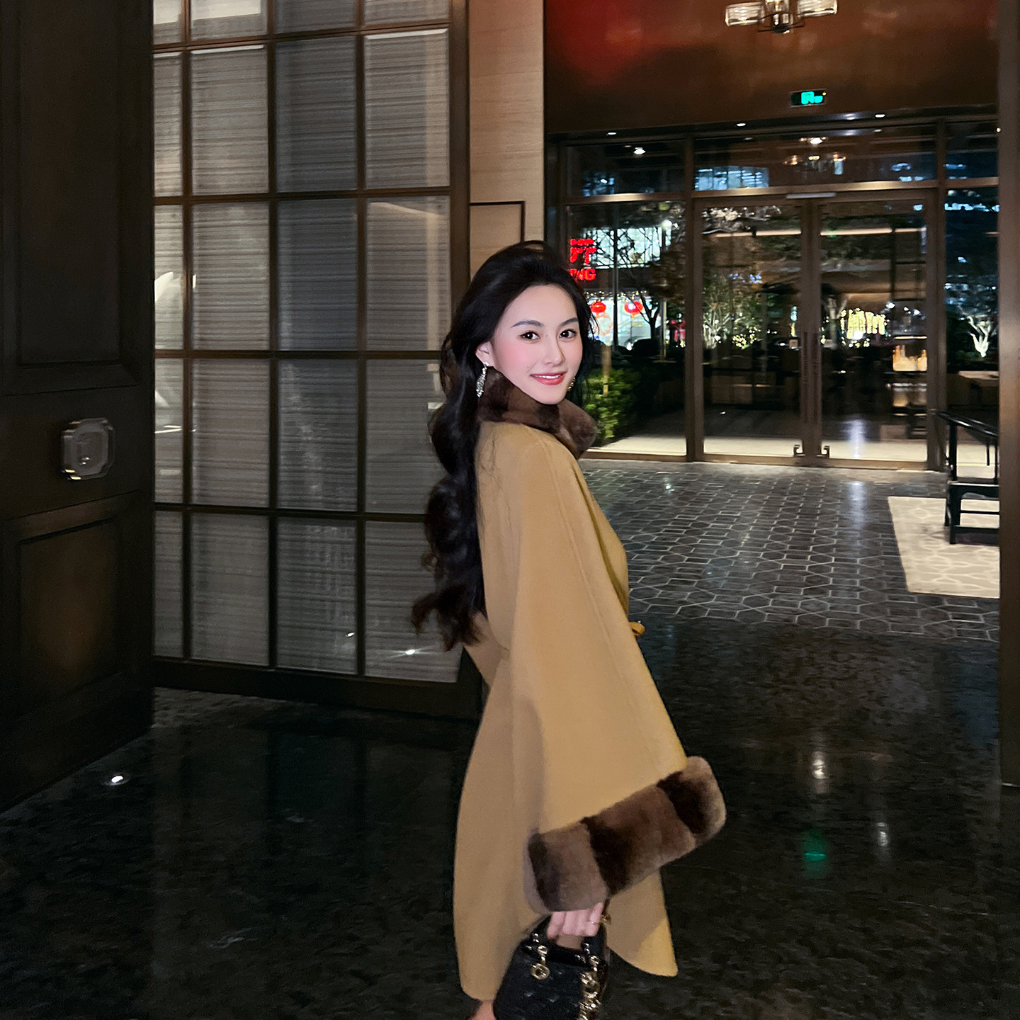 - 羊剪绒大衣 中长款