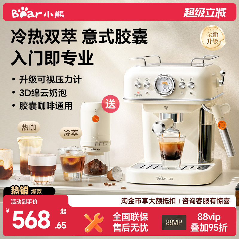 政府补贴小熊意式咖啡机小型家用全半自动高压浓缩萃取迷你咖啡豆