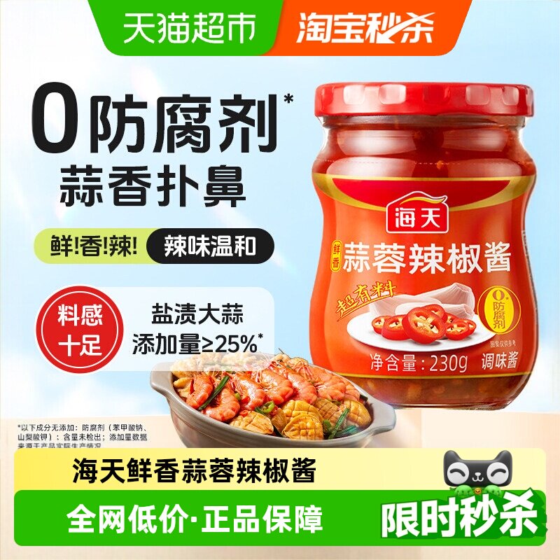 海天鲜香蒜蓉辣椒酱提鲜增味烧烤生蚝炒菜调味料泥蒜点蘸拌饭辣酱