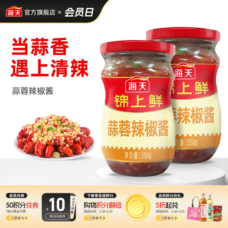 海天锦上鲜蒜蓉辣椒酱230g*2瓶装烧烤生蚝蒜蓉酱泥蒜点蘸拌饭辣酱