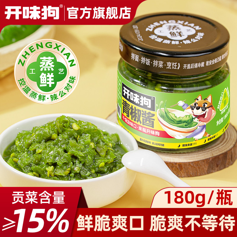 开味狗青椒酱下饭菜辣椒酱贡菜鲜椒酱蒜蓉剁椒酱拌饭拌面即食辣酱