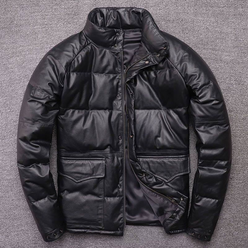 头层牛皮真皮羽绒服男新款男式头层短款修身加厚保暖皮羽绒外套男