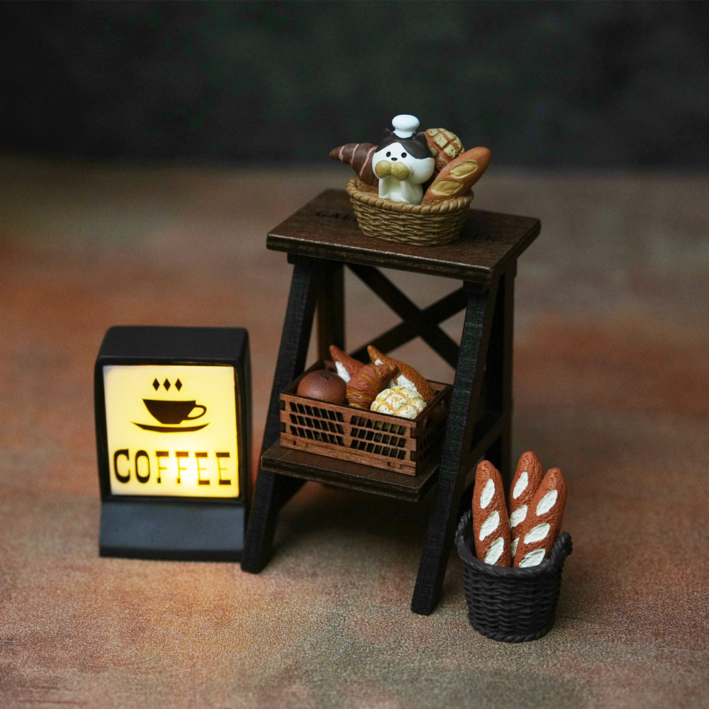 zakka日式法棍面包猫收纳咖啡店灯牌烘焙食玩娃屋可发光摆件夜灯
