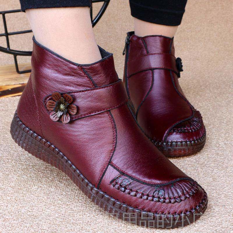 - 加绒短靴女靴 真皮