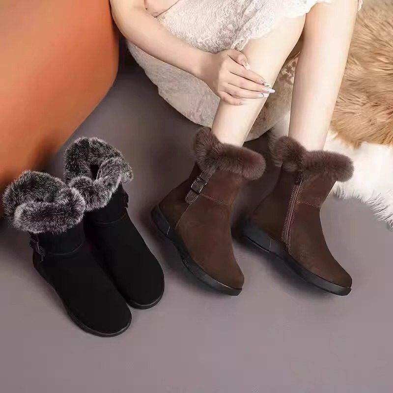 高档冬妈季厚保暖兔毛妈短雪地靴老北京布鞋女靴子平底防滑加老人