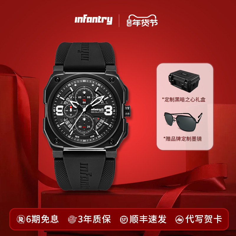 Infantry鹰轰领航者男士手表三眼系列时尚夜光运动腕表男生日礼物
