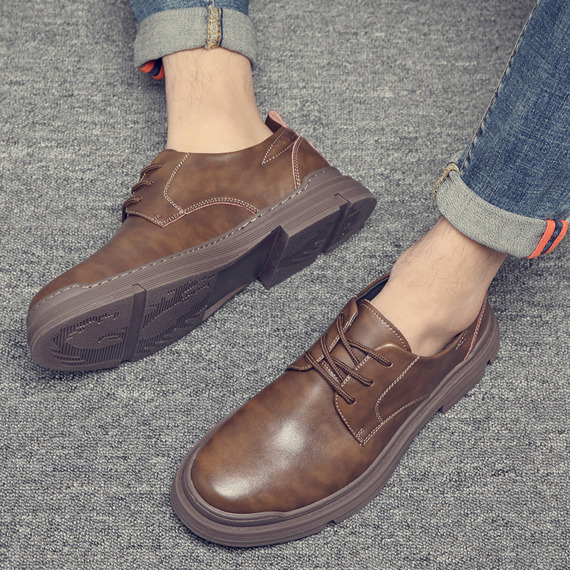 战术马丁靴男低帮夏季透气大头皮鞋潮流英伦风真皮百搭休闲工装鞋