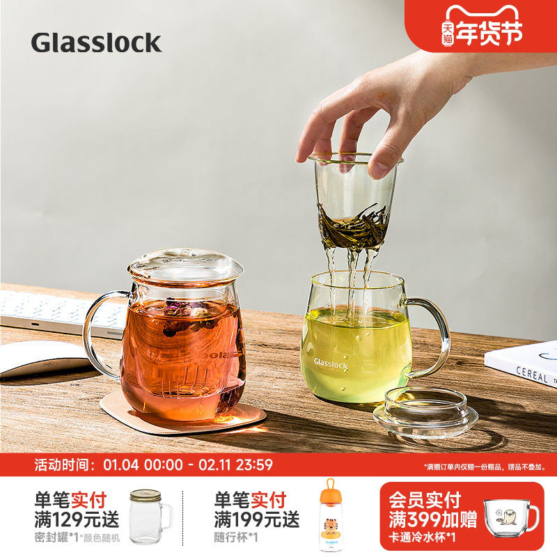 Glasslock盖朗韩国进口玻璃水杯简约随手杯家用吸管杯牛奶杯女生