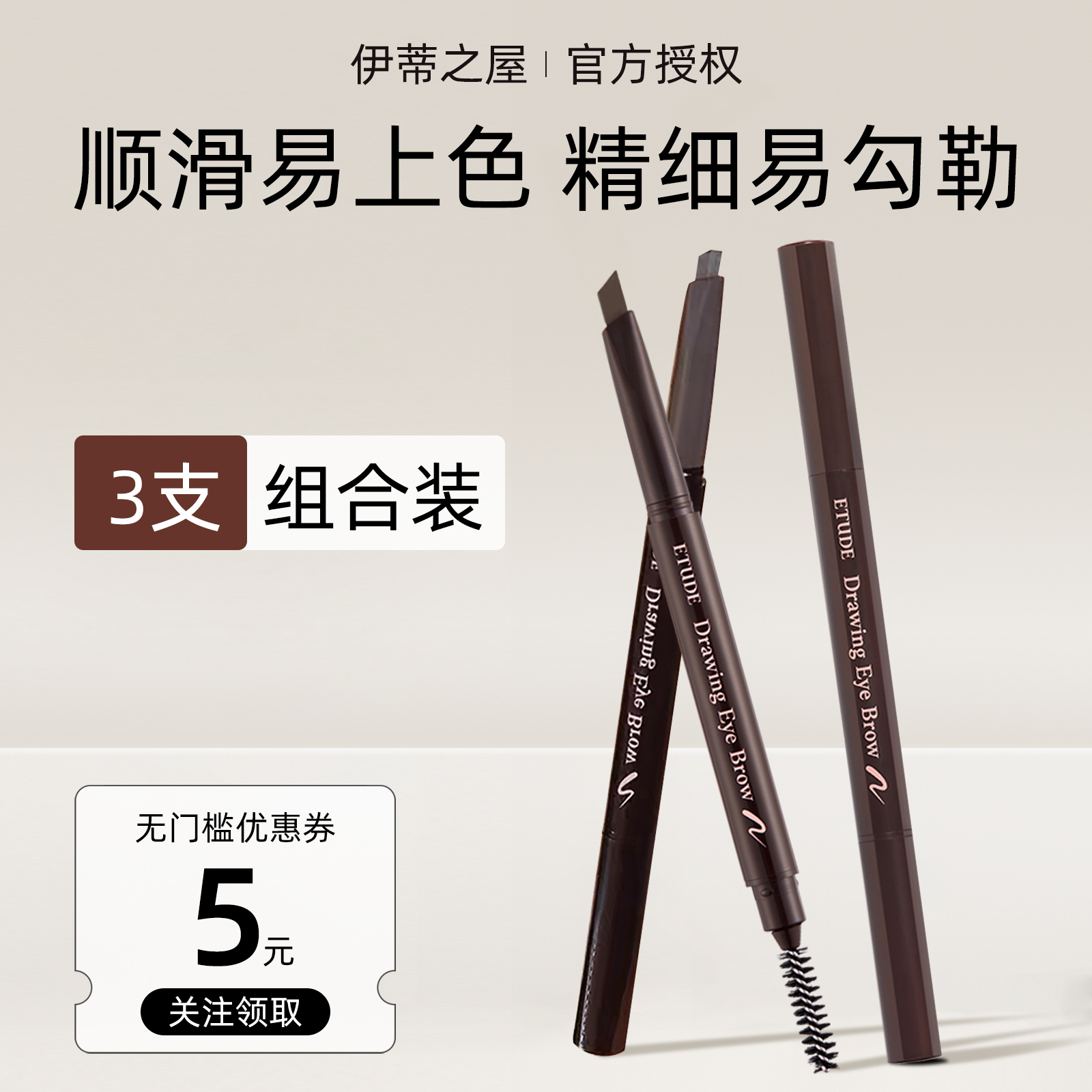 ETUDE HOUSE/ 3支 伊蒂之屋爱丽小屋初学者眉笔女野生眉防水持久