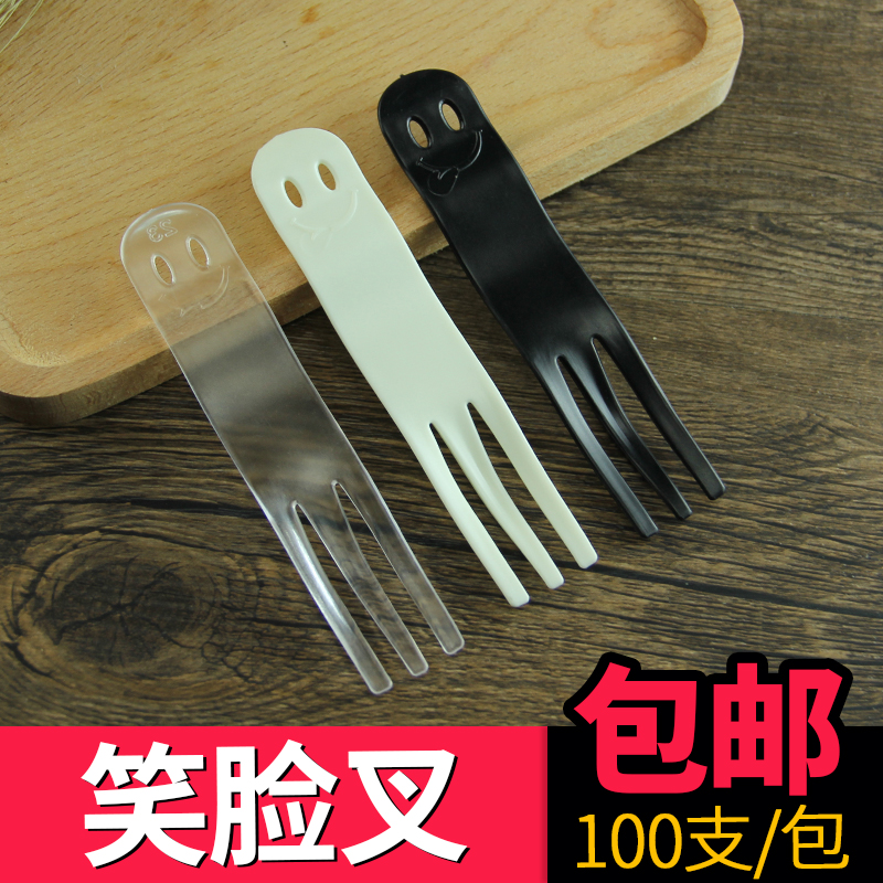 21客同款蛋糕刀叉一次性叉子水果叉笑脸叉笑脸迎客100只 包邮