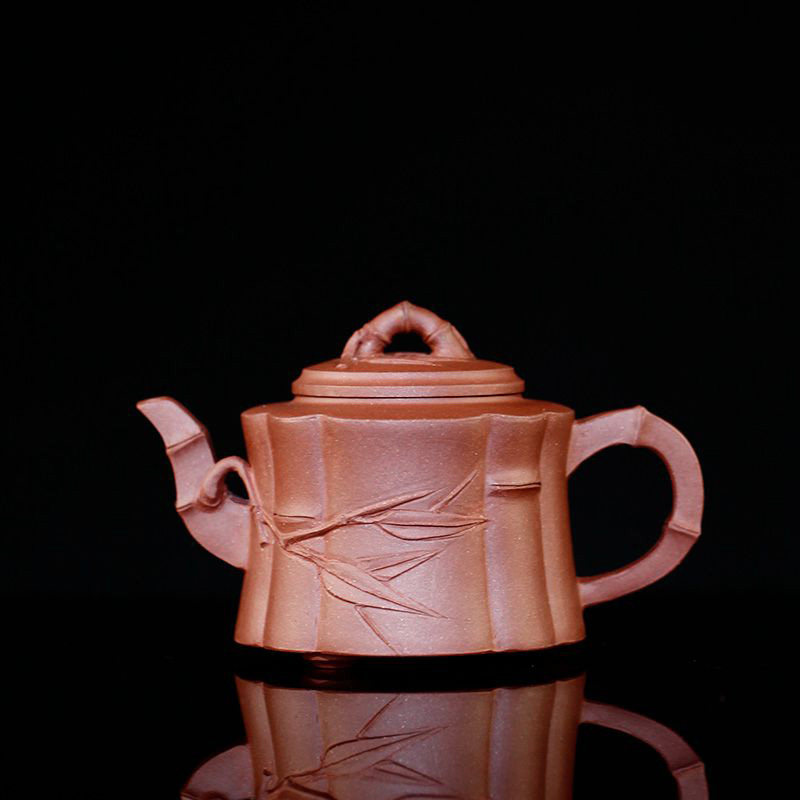 210CC方嘴竹节筋囊瘦腰竹叶壶宜兴锦囊紫砂壶纯手工紫沙茶壶茶具