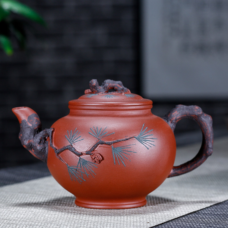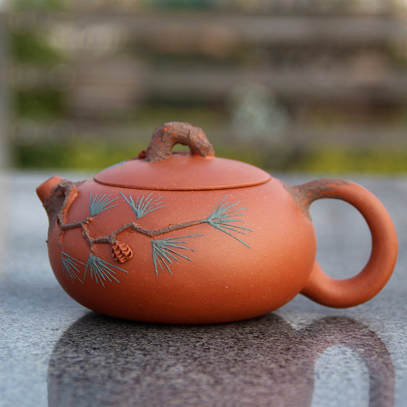 清仓大容量350毫升松针报春壶宜兴紫砂纯手工紫沙茶壶原矿清水泥