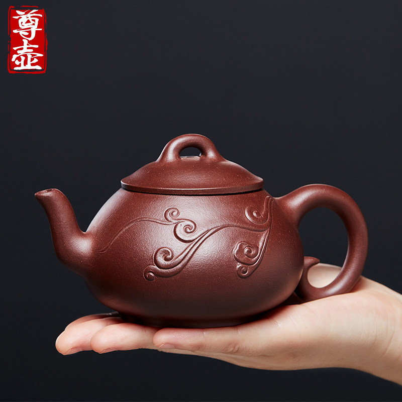 尊壶宜兴紫砂壶纯手工原矿紫泥祥云泡茶壶家用大容量紫沙功夫茶具