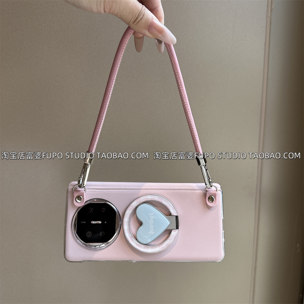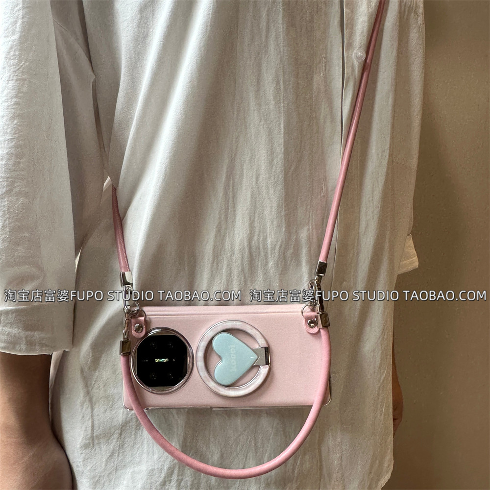 适用华为Mate X7手机壳折叠屏X6典藏版保护套中轴皮壳蓝粉磁吸支架新款vivo xfold5磁吸支架手提绳xfold3Pro