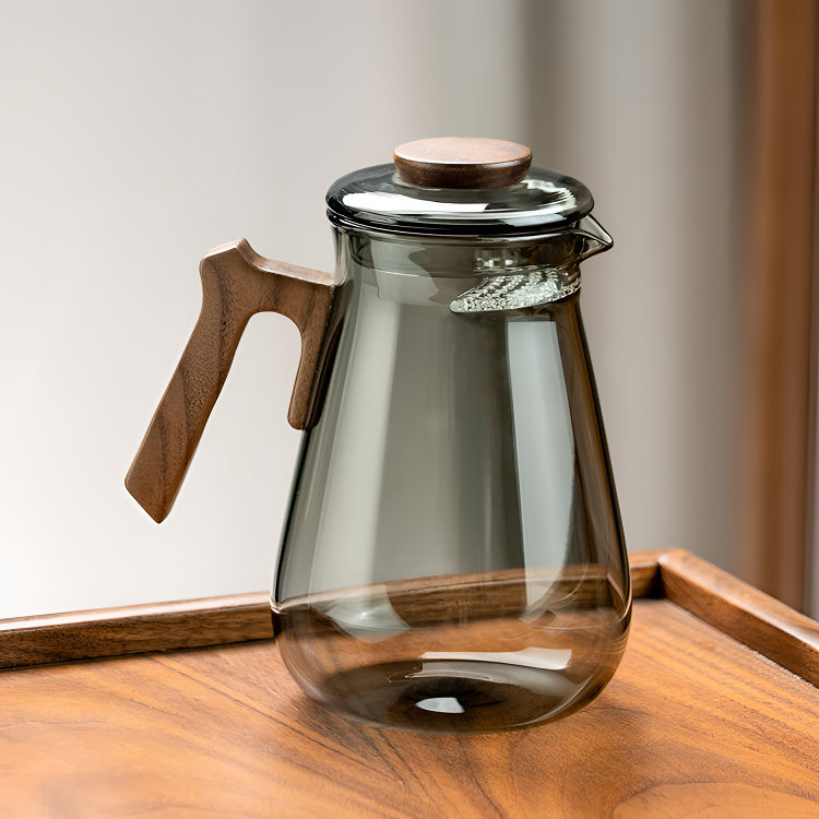 日式木把提梁壶加厚耐热玻璃壶650ml带过滤壶复古侘寂风功夫茶具