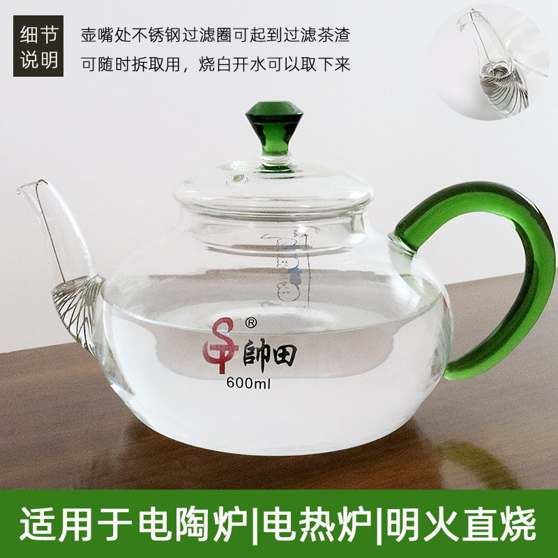 帅田电热炉烧水壶电陶炉平底耐热玻璃壶泡茶工夫煮茶壶可明火加热