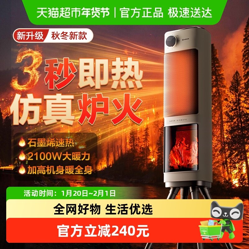 艾美特石墨烯立式暖风机家用大面积取暖器卧室新品壁炉节能电暖气