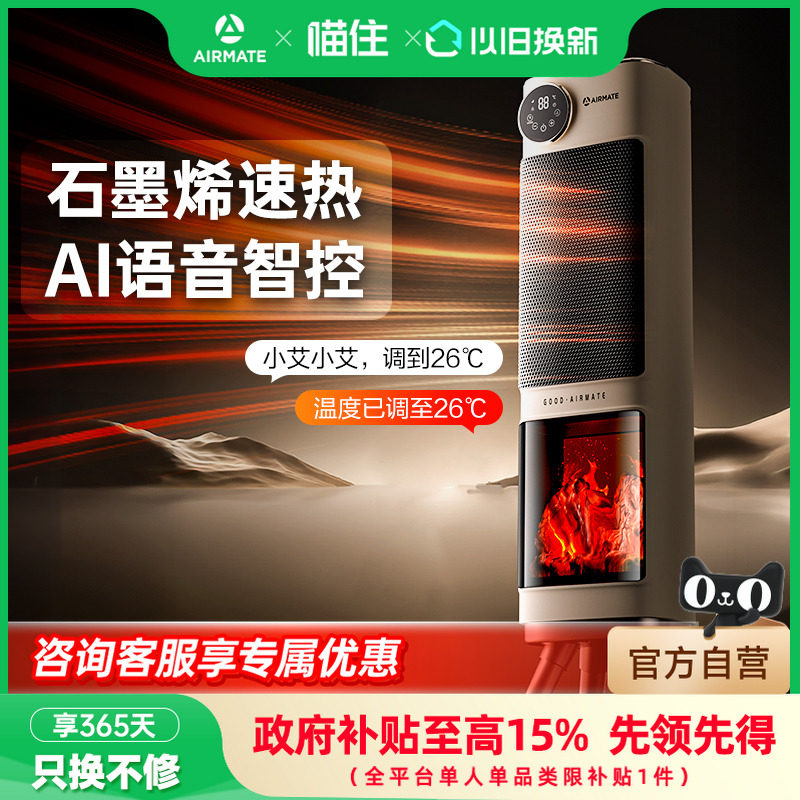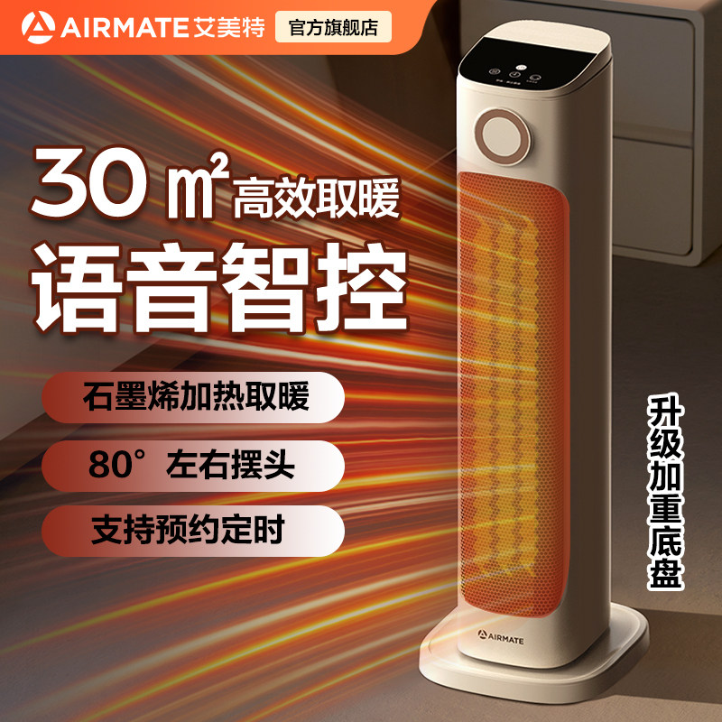 AIRMATE艾美特暖风机家用智能语音智控石墨烯取暖器3档高效取暖