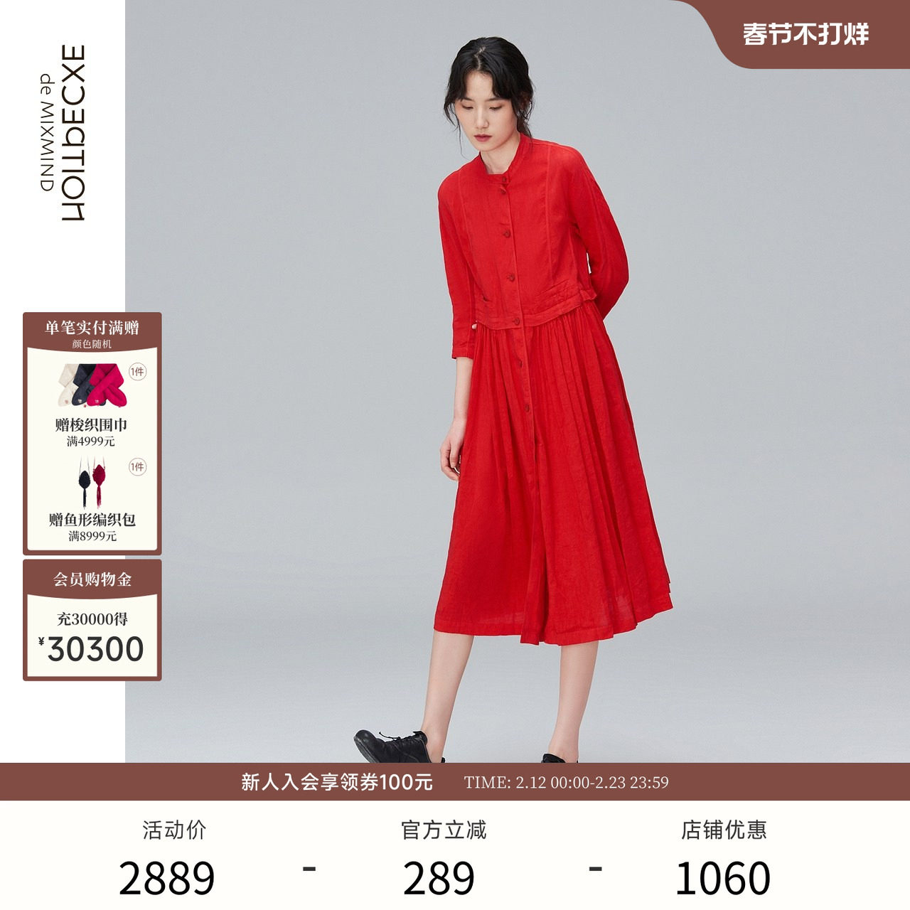 - 大红针织连衣裙