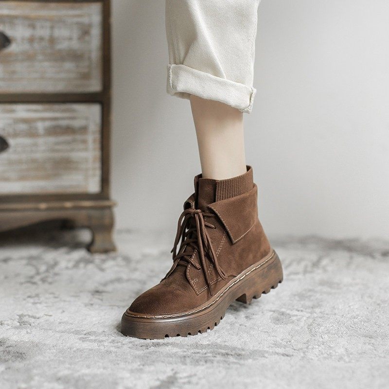 - 秋冬平底百搭短靴女