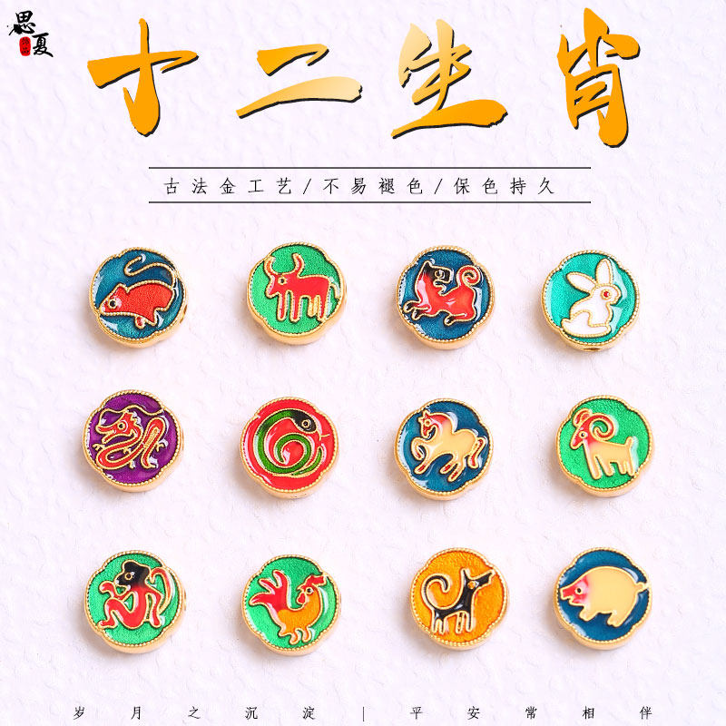 十二生肖鼠龙猪狗牛羊鸡虎串珠系列开运本命年大孔转运珠diy散珠