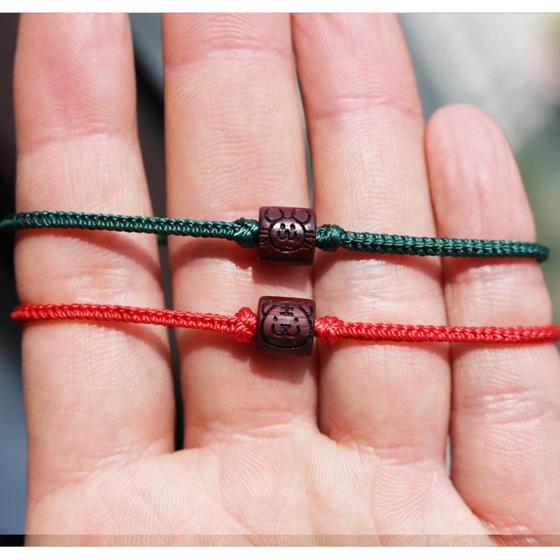 红木十二生肖手链红绳转运珠紫檀属相卡通鼠牛虎兔龙马羊猴鸡狗猪
