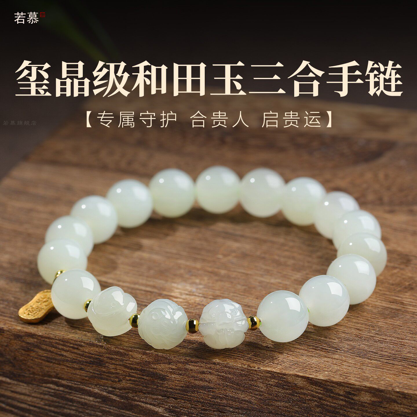 2026和田玉三合生肖手链马年转运珠蛇鸡牛虎马狗猪兔羊猴鼠龙手串