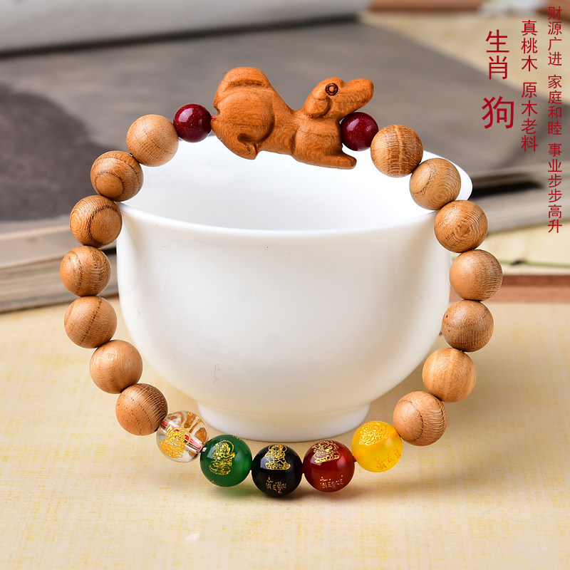 正宗桃木手链原木老料十二生肖手串猪马狗鸡猴财神男女转运珠新款