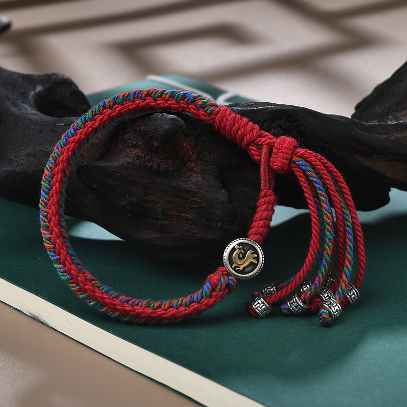 真安顺十二生肖本命年龙兔牛鸡藏式转运珠红绳手链粗棉线银饰礼物