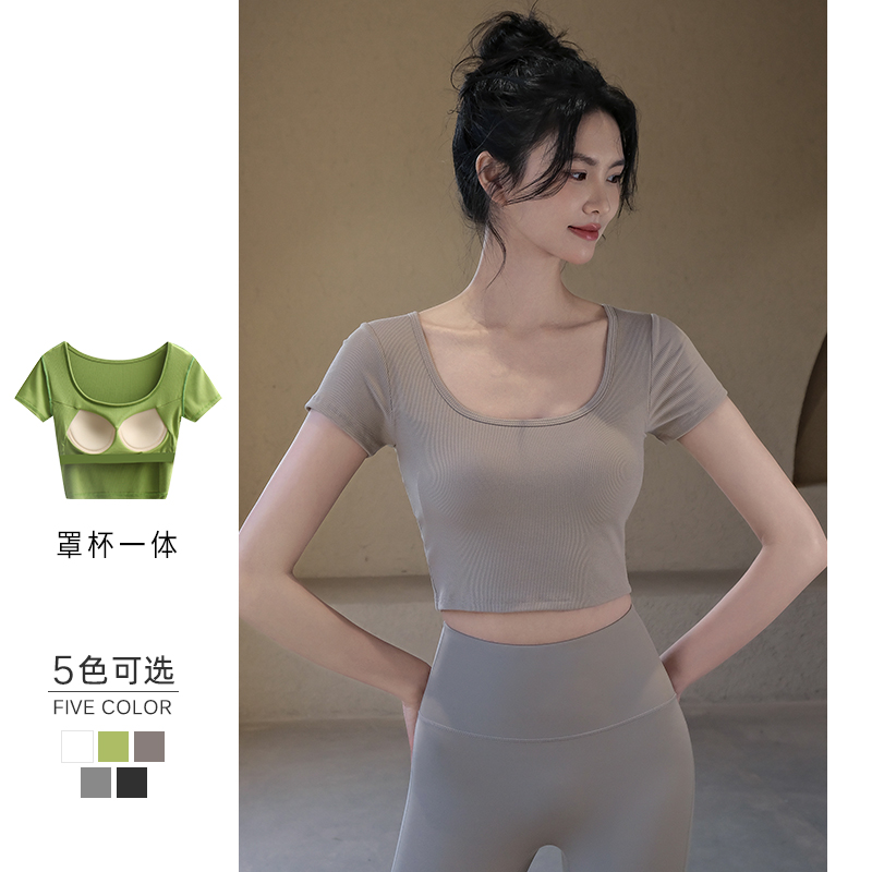 Aria Leisure 短款运动短袖T恤女夏纯色健身上衣紧身跑步瑜伽服