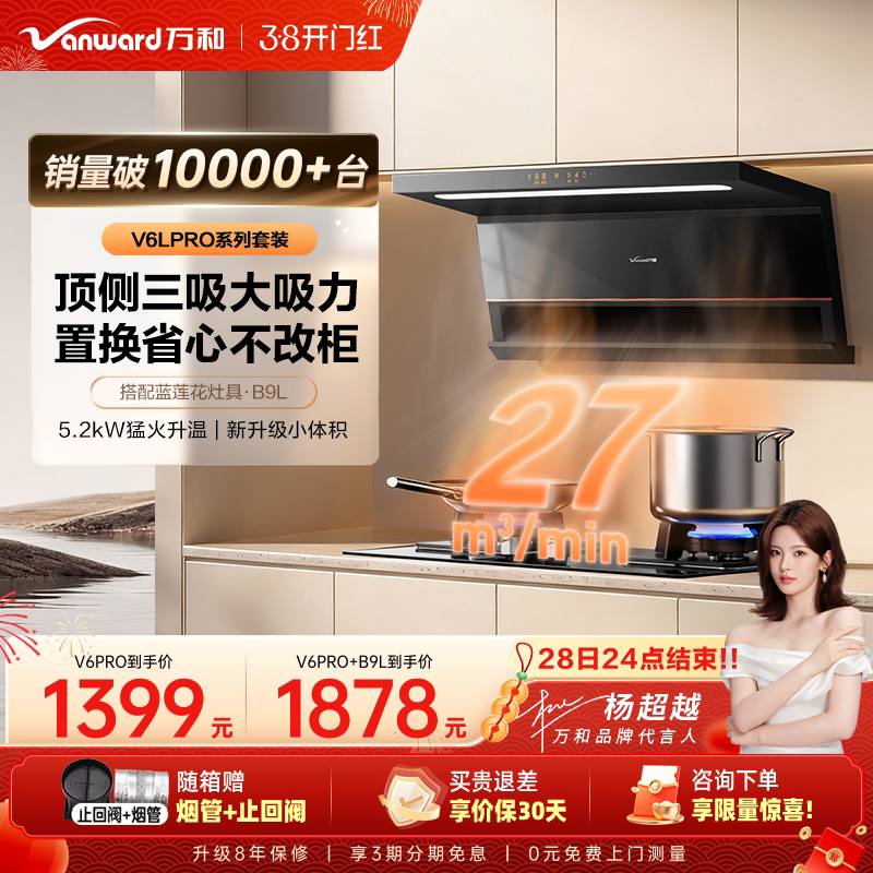 [百亿补贴]万和顶侧双吸家用厨房大吸力抽油烟机燃气灶套装V6LPRO
