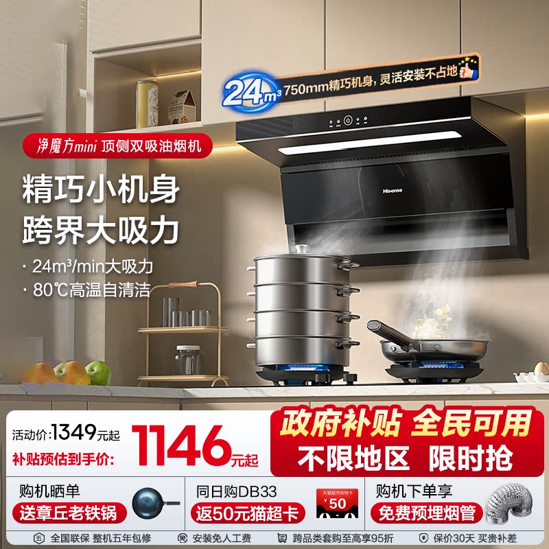 海信油烟机燃气灶套装套餐厨房家用正品顶侧双吸小尺寸DS11H Mini