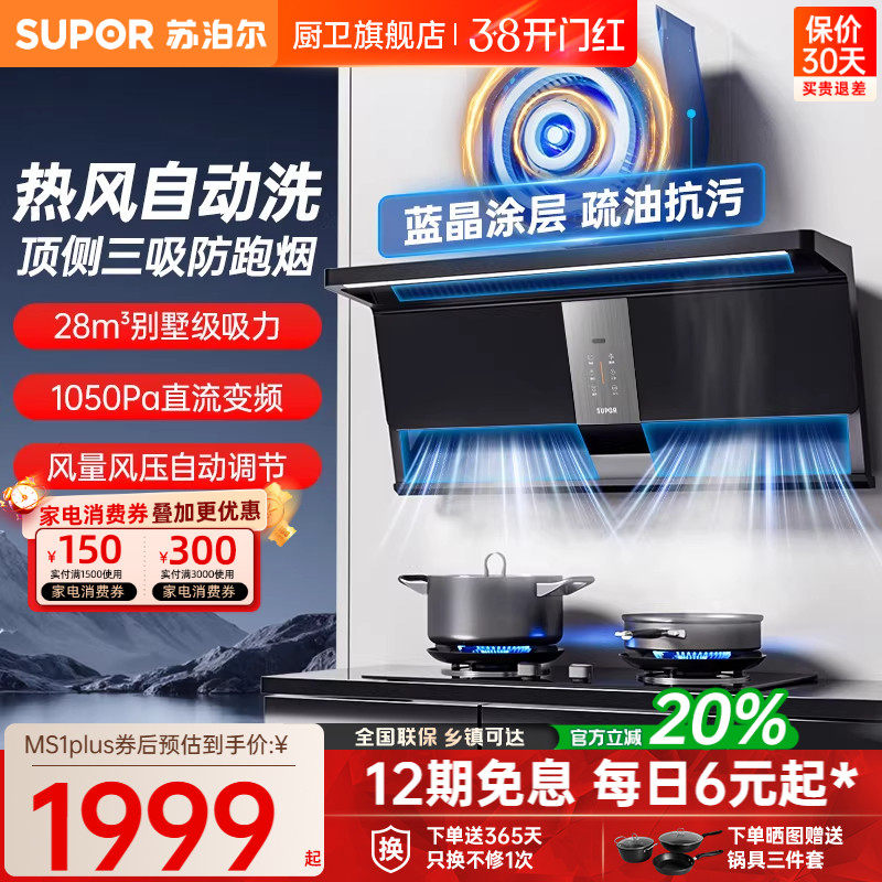苏泊尔MS1plus抽油烟机家用厨房大吸力变频燃气灶套装吸油烟机