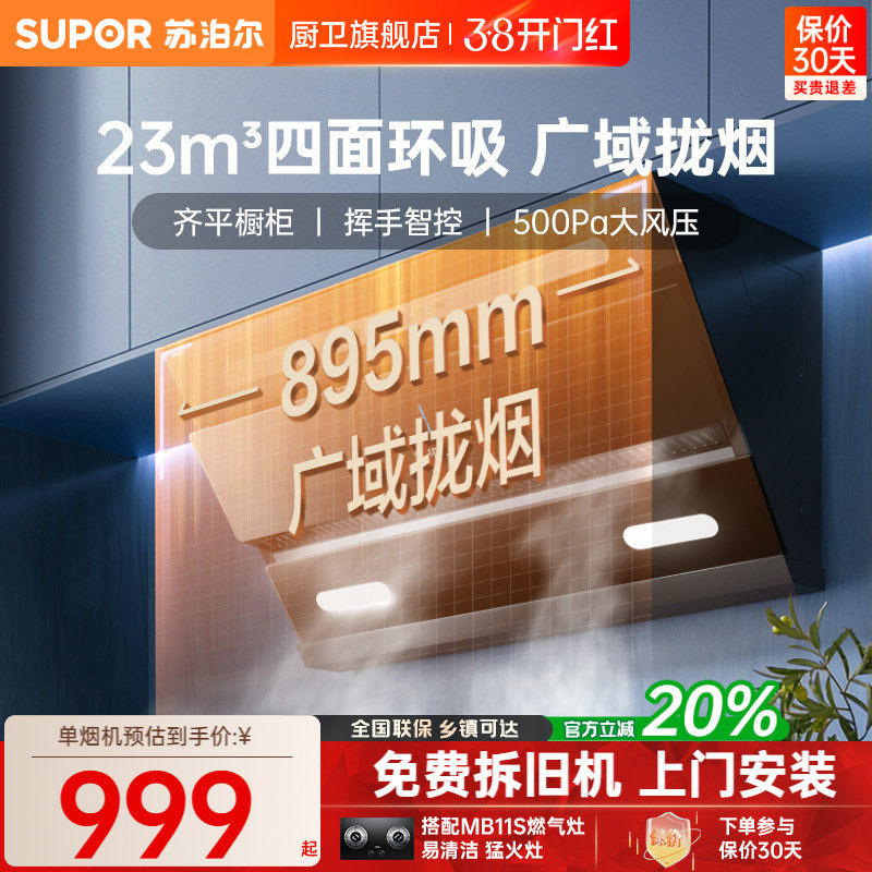 苏泊尔油烟机MS1顶侧双吸燃气灶家用厨房大吸力抽油烟机套装烟机