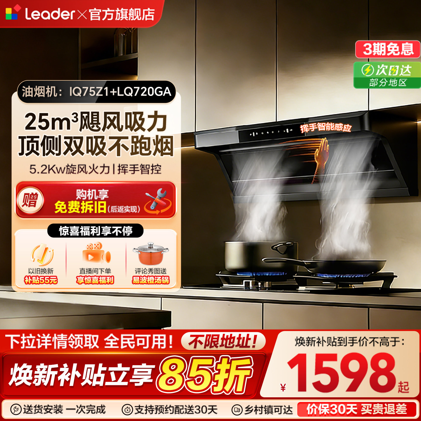 海尔出品统帅顶侧双吸油烟机燃气灶一套75Z1烟灶套装以旧换新补贴